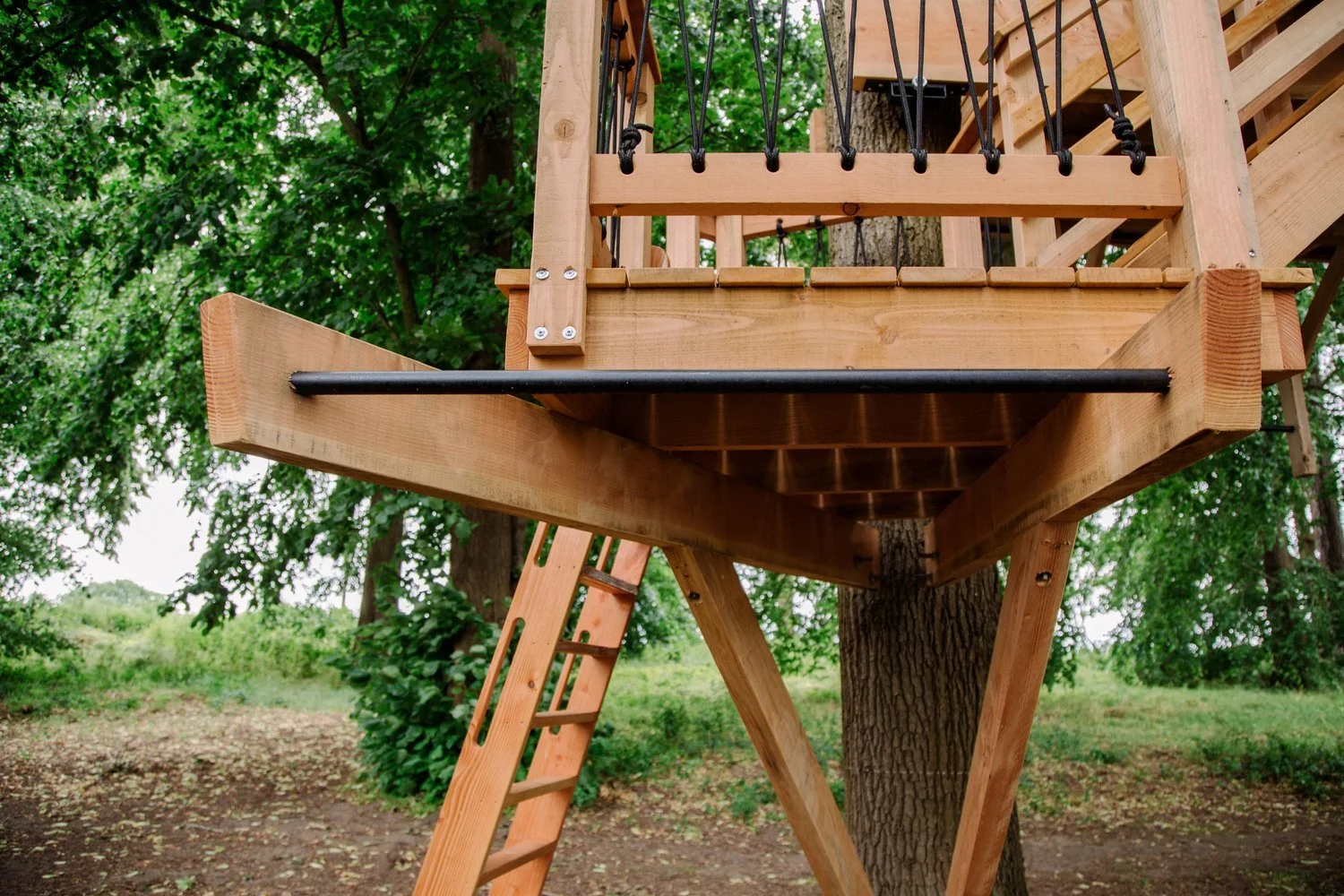 OK so it's not technically adjoined to the treehouse, but a seesaw is a great play feature which can be integrated as part of the overall tree house design and can make use of the space underneath or next to a treehouse. Check out the Nassjo Treehouse’s rustic seesaw which uses recycled tyres.
